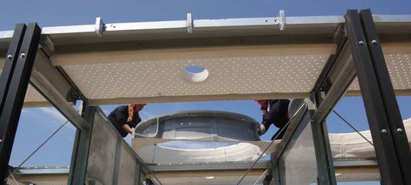 采用先进的良流线技术加工而成,整体结构强度高,结构受力合理。塔体结构具有多向受力性能的效果,能有效的承受集中荷载,非对称荷载,降低了冷却塔的振动(自振频率为12HZ,运行的最大振幅0.09mm)。提高了冷却塔抗风荷、抗震能力,具有良好的整体稳定性。塔内主要受力钢件、配水管及检修梯等部件,其防腐问题是整塔质量保证的一个重要环节,本厂为保证质量,所有出厂钢质构件均采用热镀锌进行防腐处理。