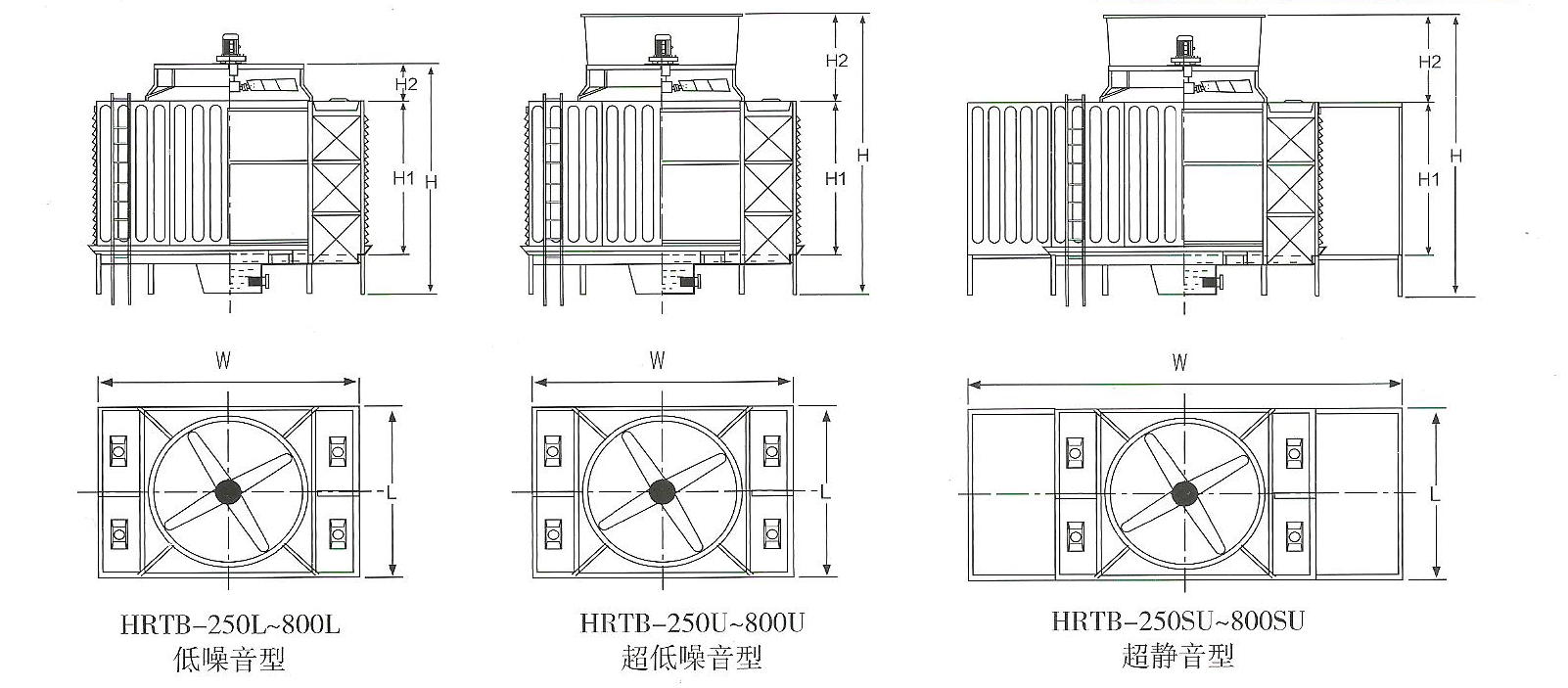 ◆ HRT系列横流式低噪音冷却塔示意图