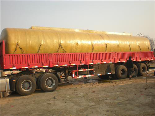 玻璃钢运输罐由树脂和玻璃钢纤维通过微电脑控制机器缠绕制作而成,附带鞍座的卧式储罐,主要是用在汽车方面运输液态,气体腐蚀性较强的介质,比如石油、盐酸、甲醛、甲醇、次氯酸钠、酒水、酒精、石油、甲醛、污水等产品的运输。