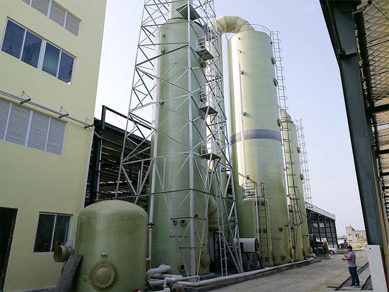 玻璃钢脱硫塔产品是一种用于各种工业领域的脱硫设备。玻璃钢脱硫塔可净化的有害气体有氯化氢(HCl)、氟化氢(HF)、氨(NH3)、硫酸雾(H2SO4)、铬酸雾(CrO3)、氰化氢气体(HCN)。
